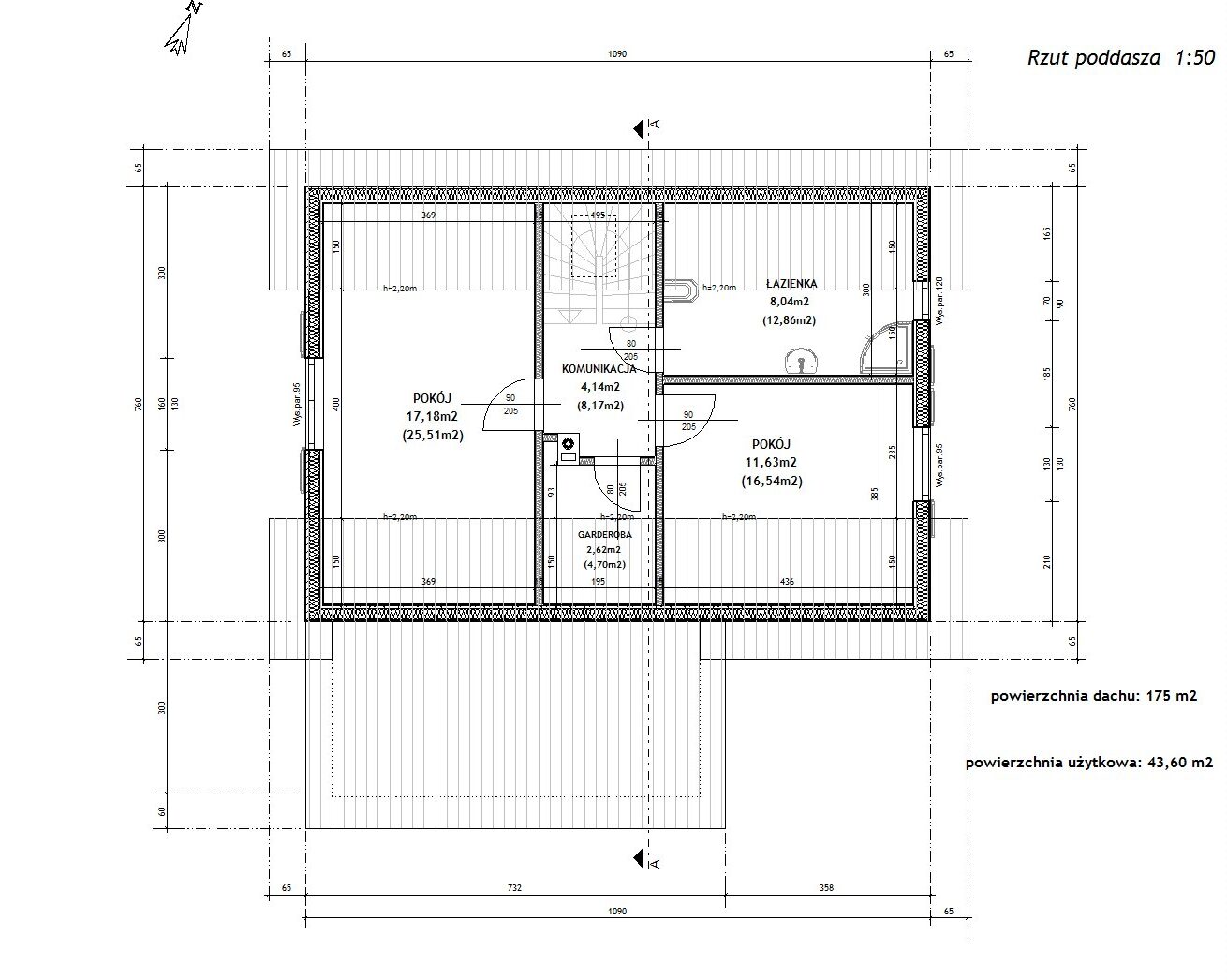 • Powierzchnia dachu: 175,00 m²
