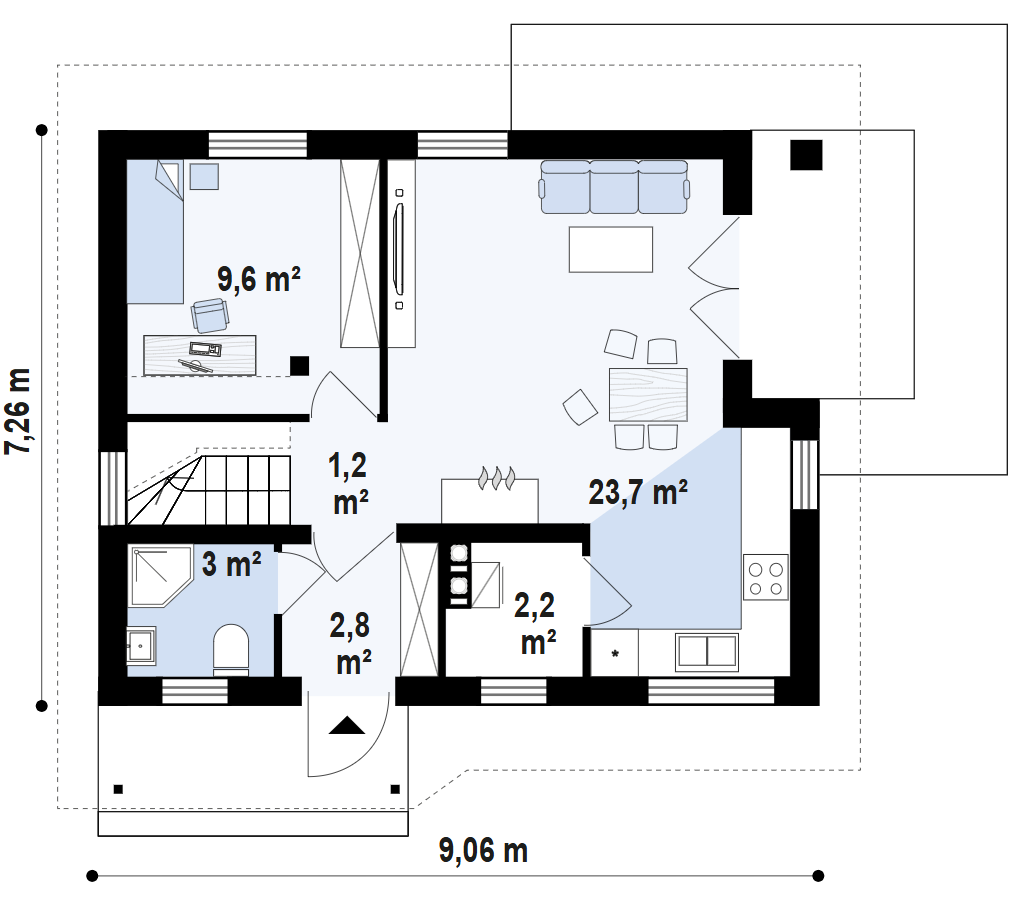 - Minimalne wymiary działki: 17,06 x 15,26 m